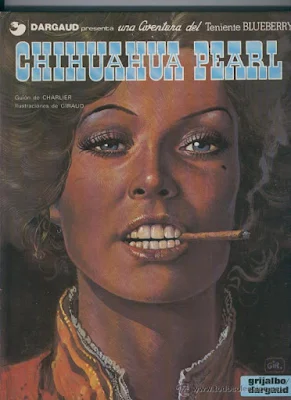 Como un 1/3 de esta cole me la regalaron cuando era peque. Me lo leí entonces, pero no me llenó mucho. Demasiado texto y poca acción. También pasó que el Oeste no me atrae. Aún así poco a poco me hice con los 1/3 que me faltaban. Quizás fue porque flipé y flipo con el tríptico "El tesoro de los confederados", un cómic excepcional. Quizás pensaba, a ver si me voy a estar perdiendo una joya... El caso es que he releído Blueberry varias veces y la conclusión siempre ha sido la misma, buen guión y magnífico dibujo pero no me encandila, demasiado texto y poca acción, y poca presencia femenina, y el Oeste no es una de mis ambientaciones preferidas. Eso sí, "El tesoro de los confederados" es fabuloso, un Spaghetti Western del calibre de El bueno, el feo y el malo. Pero en mi última relectura, que ha sido a salto de mata, al haberse hecho por orden cronológico, como era habitual en los 80 las editoriales españolas se lanzaban a publicar títulos extranjeros con el material reciente dejando el anterior para cuando ya no hubiese aquel, resultando dello que las ediciones españolas ochenteras mezclan lo nuevo con lo viejo en vez de empezar con y en el nº 1 original y seguir desde ahí sin saltos, me he dado cuenta de que Blueberry tiene una progresión interesante por lo que ha mejorado mi opinión sobre ella, aún así me sigue pareciendo que tiene demasiado texto.